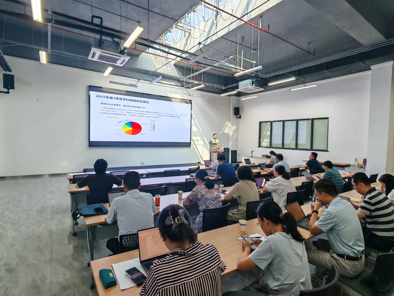 信息中心主任刘振华通报了江苏省教育厅网信办关于第三季度学校网络安全事件的通报及处置情况,并就第三季度网络安全工作进展、2025年国家网络安全宣传周系列活动开展情况,以及安可采购备案工作进行了总结汇报。